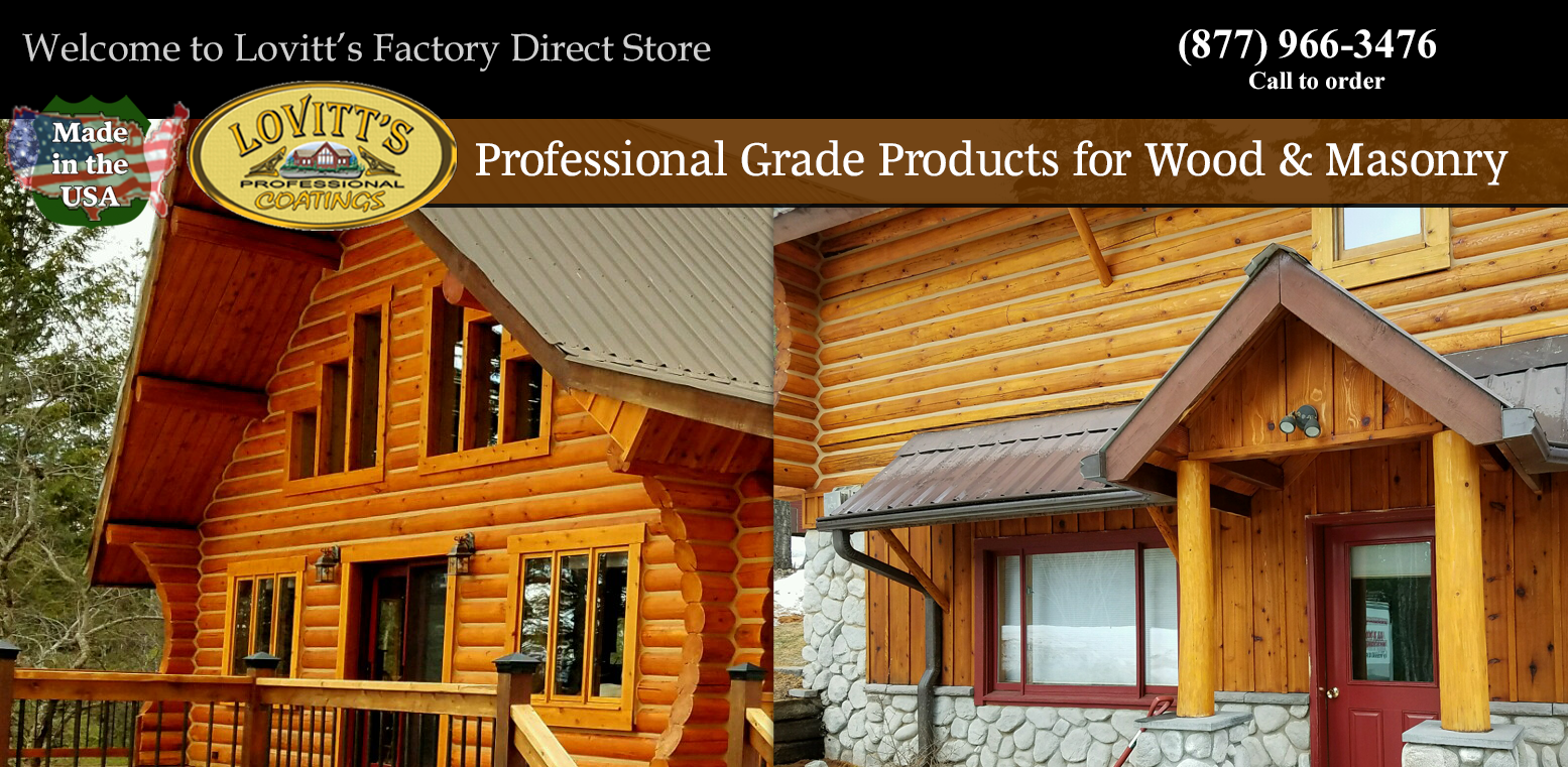 At Lovitt's Professional Coatings we strive to find the latest innovations in wood care chemistry advances and bring those technologies to our product line. We're not stuck on old formulas, we believe that they can get better every day with the rapid advances in UV blocking, micro-acrylic, and nano technologies and we prove it delivering the most modern, easy to use log home stains, wood siding stains, wood restoration chemicals, and deck sealers while meeting all environmental standards and VOC regulations.
